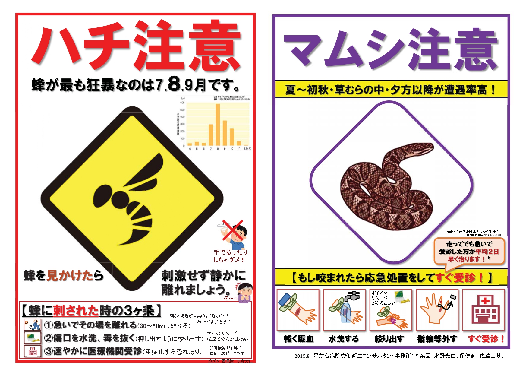 ヘビ、ハチに注意