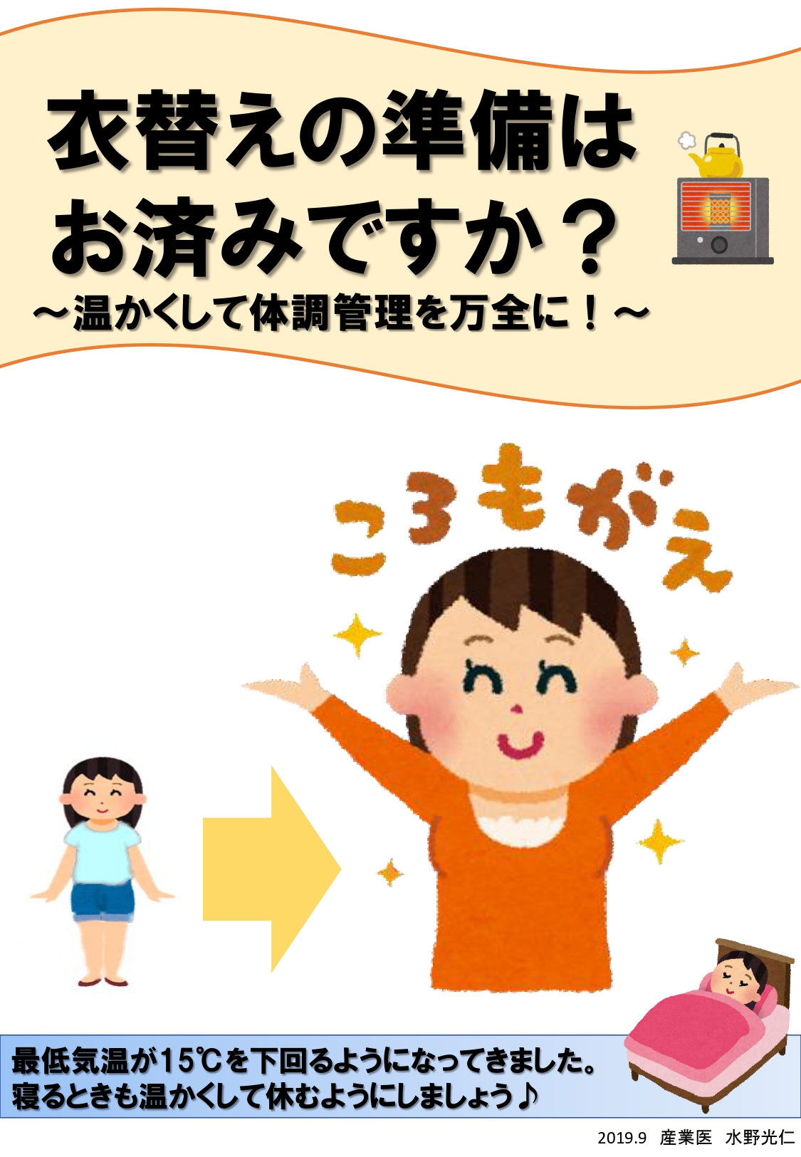 寝るときも温かくして休むようにしましょう。
