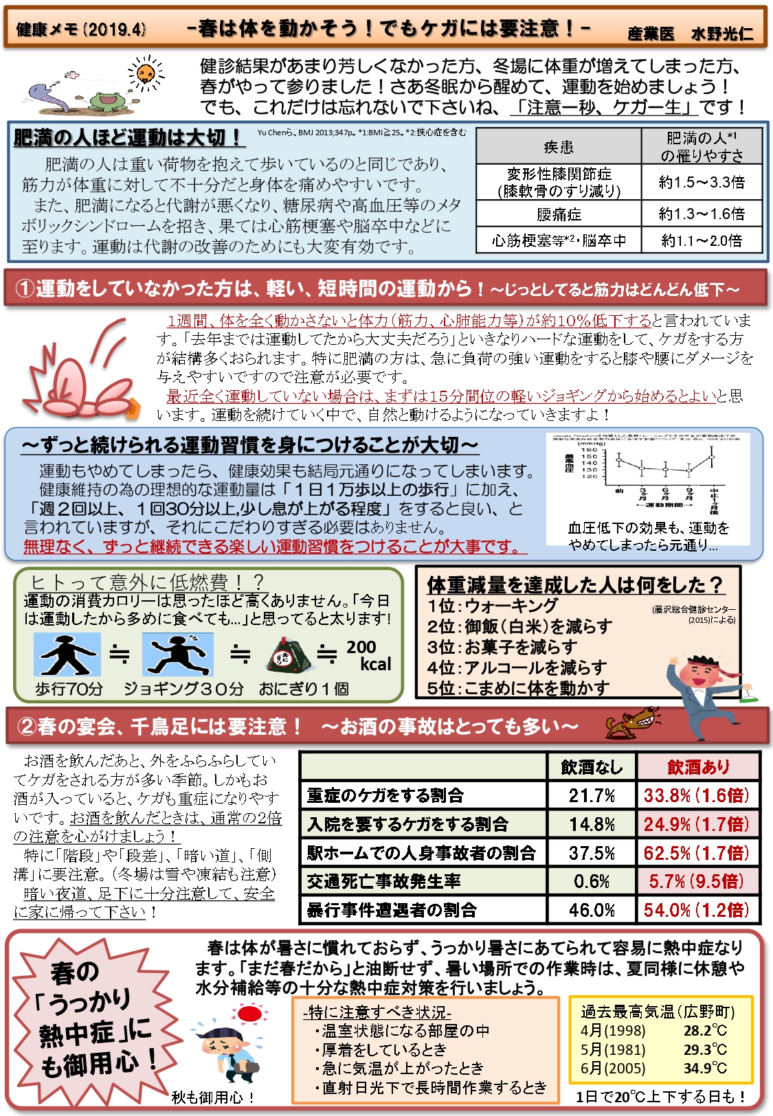 健診結果があまり芳しくなかった方、冬場に体重が増えてしまった方、春から運動を始めましょう。